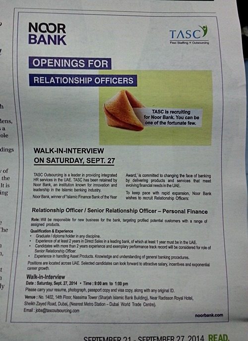 Noor Bank Walk-in Interview at Nassima Tower (near Dubai ...