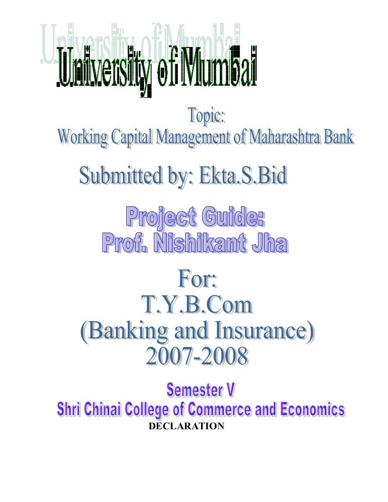 Working capital management of maharashtra bank