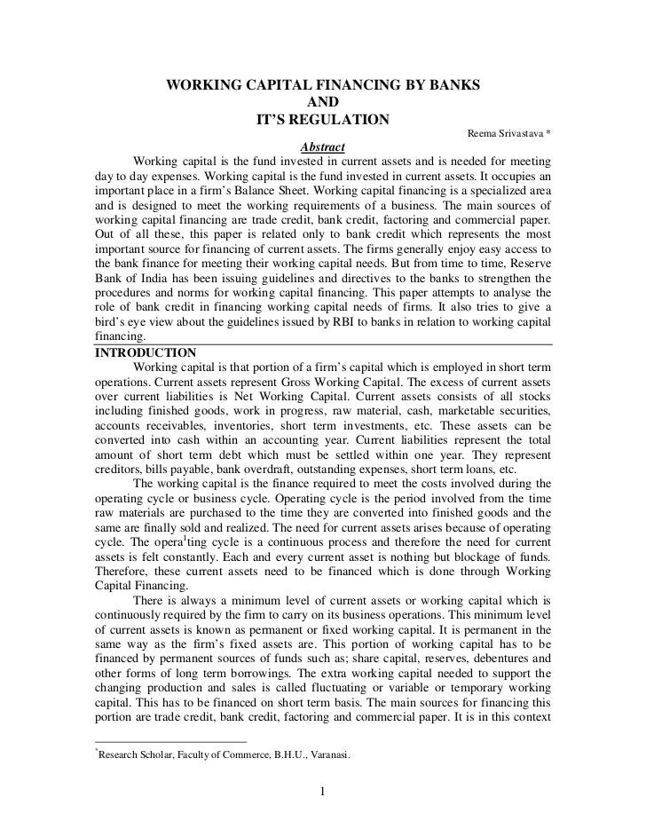 Working Capital | Working Capital | Banks