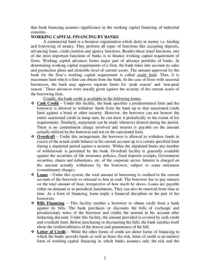 Working capital financing_by_banks