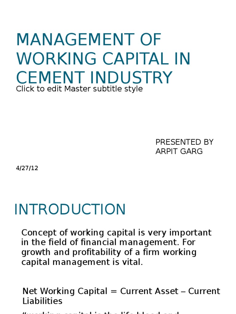 Management of Working Capital in Cement Industry | Working ...