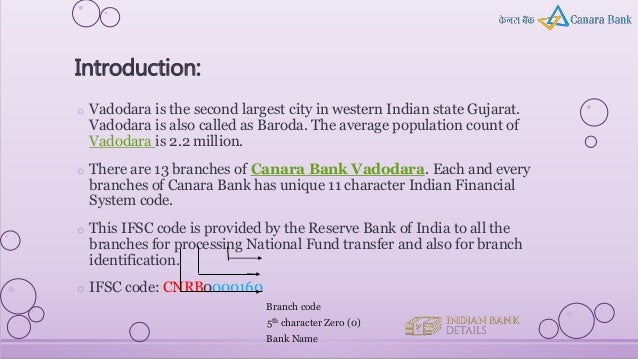 Micr and swift code for canara bank vadodara
