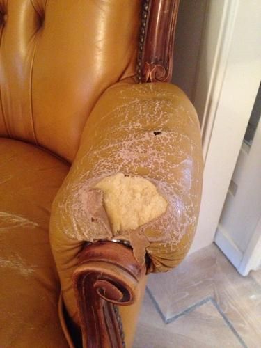 Repareren armleuning oude leren fauteuil - Werkspot