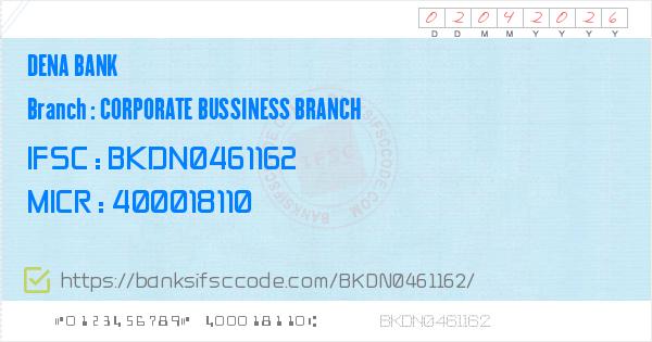 Dena Bank Corporate Bussiness Branch Branch IFSC Code ...