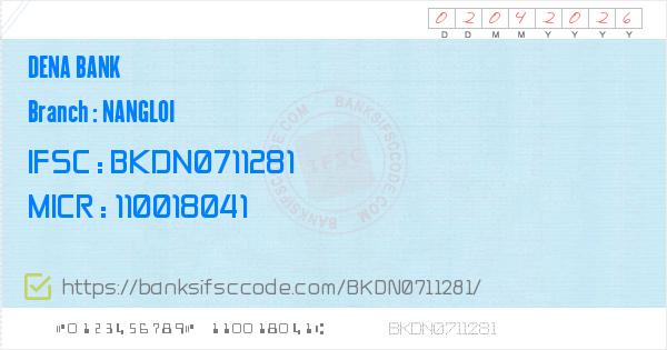 Dena Bank Nangloi Branch IFSC Code - Delhi. Contact Phone ...