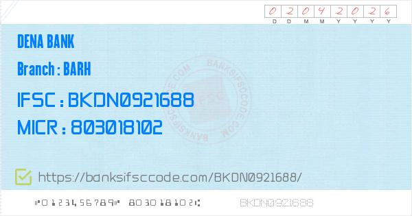 Dena Bank Barh Branch IFSC Code - Barh. Contact Phone ...